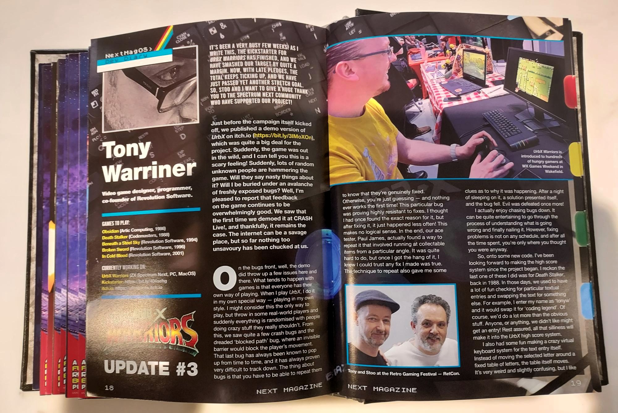 Retro reading and a surprise mention: I have been very fortunate to have had a mention in CRASH magazine (Knightmare) and Debug Magazine (Sleepytime Village) so it was a wonderful surprise, after a long day at work, when I sat down with a cup of tea and the latest issue of NEXT magazine, and saw my name in the UrbX Warriors update. It always makes me smile and I am grateful for the acknowledgment. There is a lot of time and hard work that I put into testing so to see that appreciation in a magazine I enjoy reading is something I, in turn, appreciate.