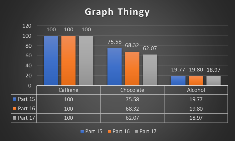 So, what this shows me is that I have a caffeine addiction, I’m slightly less full of chocolate than I was in September, and I’m made up of 18.97% alcohol.