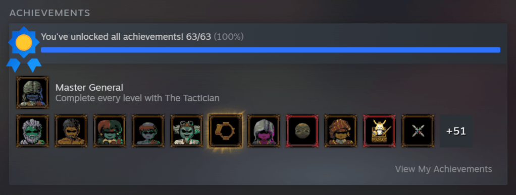 It’s been a while since I played a game that I became a little addicted to. Thankfully, I’ve completed it (with 100% achievements) and have not gone back to try ‘New Game+’ (yet…) and so have now returned to write a blog. It was fun though, and the first game I’ve played where an unlocked character will actually play the game for you. I found that odd; watching the game play itself, but I did learn a few things along the way which changed my strategy later in the game.